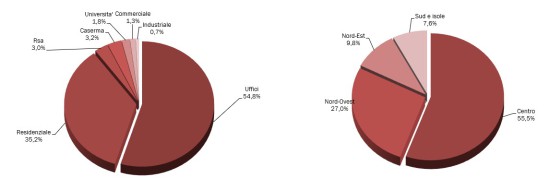 Il portafoglio del Fondo InarcassaRe Comparto Due è costituito da 56 immobili localizzati in prevalenza al Centro e Nord Italia, destinati principalmente ad uso uffici e residenziale. |