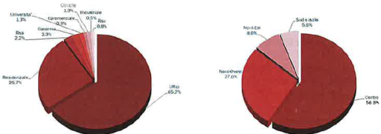 Il portafoglio del Fondo InarcassaRe Comparto Due è costituito da 67 asset localizzati in prevalenza al Centro e Nord Italia, destinati principalmente ad uso uffici e residenziale. |