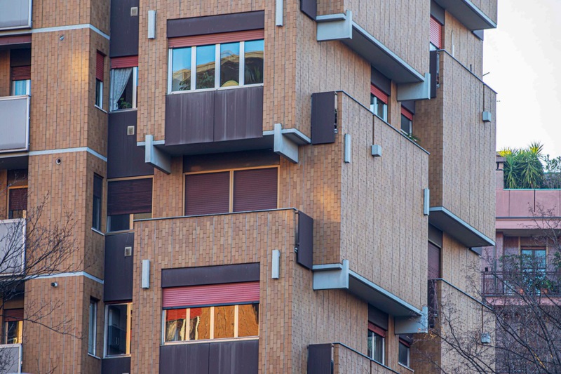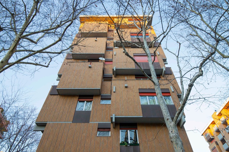 Il complesso si compone di 2 corpi di fabbrica speculari, che si sviluppano su 10 piani fuori terra adibiti ad abitazioni ed uno interrato destinato ad autorimessa e cantine. |