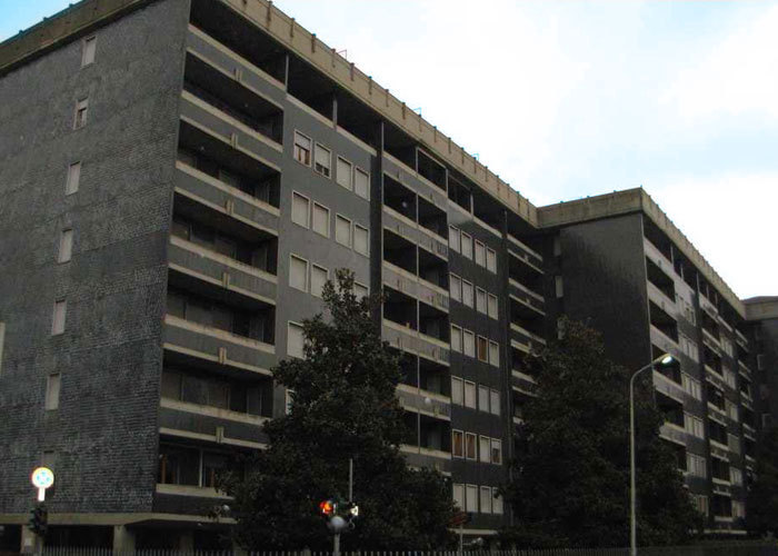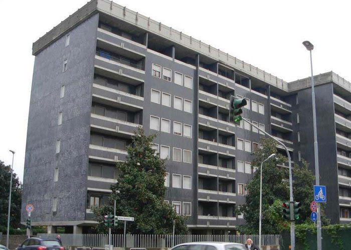 La proprieta è costituita da due edifici contigui, porzione di un complesso residenziale composto da nove edifici in linea, a pianta rettangolare, di 8 piani fuori terra ed un interrato. Gli edifci sono distribuiti perimetralmente su un lotto di terreno pianeggiante della superficie di circa 4 ettari, con al centro un giardino condominiale. Il primo piano, ad eccezione dell'ex alloggio del custode, è destinato ad uffici, tutti gli altri piani ad alloggi. Il piano interrato è destinato a cantine e box auto. |