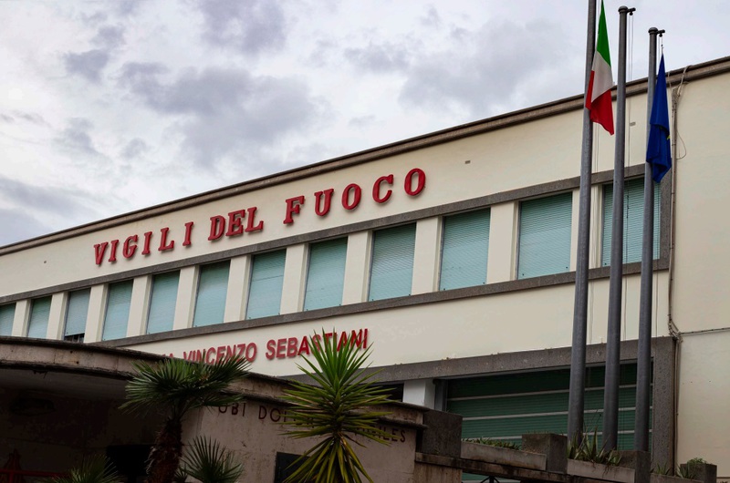 Il fabbricato si compone di quattro piani fuori terra più un seminterrato ad uso deposito, adibito a Caserma dei Vigili del Fuoco. E’ composto da un unico corpo di fabbrica a base rettangolare caratterizzato dalla presenza di una grande corte interna. |