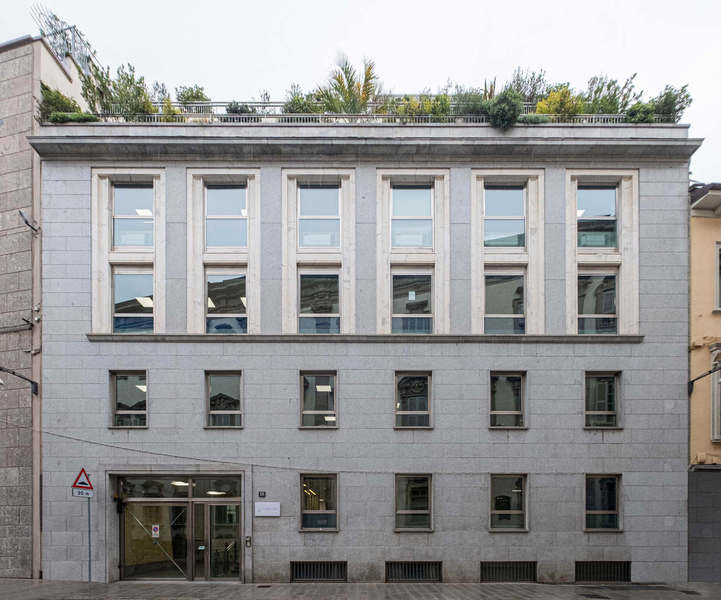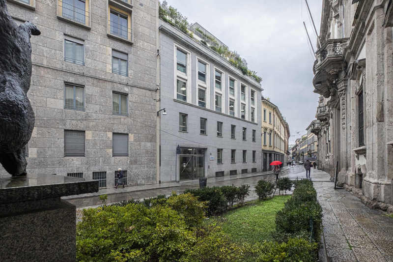 Immobile costruito nel 1957, ubicato nel centro storico di Milano in un impianto urbanistico medioevale caratterizzato dalla presenza di numerosi edifici storici oltre alcune introduzioni recenti frutto, in gran parte, di riqualificazioni post-belliche. Il complesso, che si articola su sei livelli fuori terra ad uso uffici ed un piano interrato destinato a parcheggi, è stato completamente ristrutturato nel 2005. La viabilità nella zona è ad accesso controllato e limitato ai soli mezzi pubblici, conferendo al contesto di insieme un’eccellente qualità urbana. |